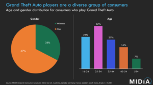 Em média, os jogadores de GTA passam 11,3 horas por semana nas redes sociais, mais do que o consumidor médio e mais do que gamers em geral. Também são hiper conectados com entretenimento em todas as frentes: vídeo, música, podcasts, TV. Tudo.