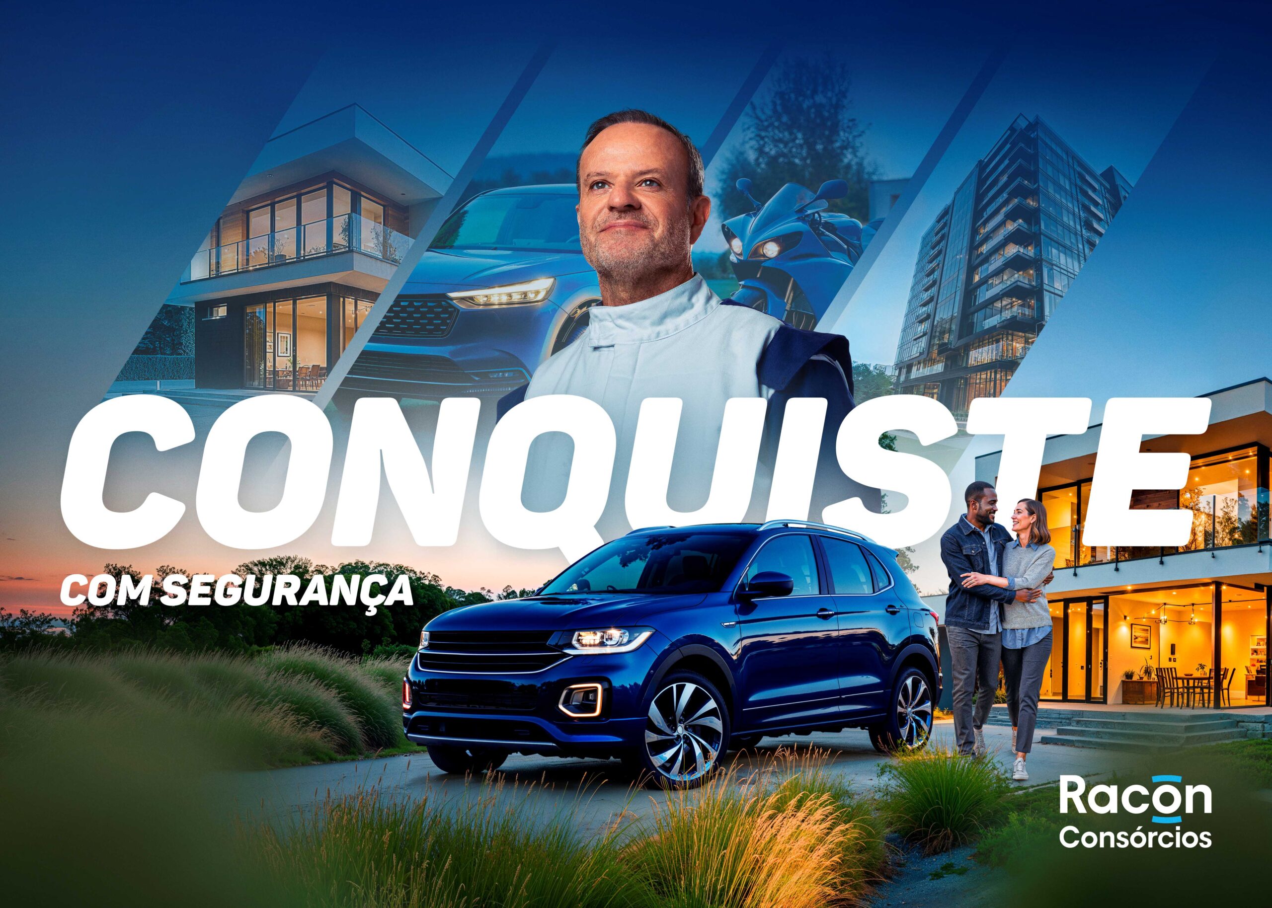 Assim como nas pistas, quem se planeja, conquista. Essa é a ideia central da campanha que a SPR idealizou para a Racon Consórcios, com o objetivo de gerar novos cadastros e vendas de consórcios. Protagonizada pelo piloto Rubinho Barrichello como embaixador da marca, a ação publicitária ganhou o conceito “Conquiste”, que traduz o propósito da Racon: mostrar que, com planejamento e segurança, todo mundo pode contemplar sua vida com uma grande conquista.
