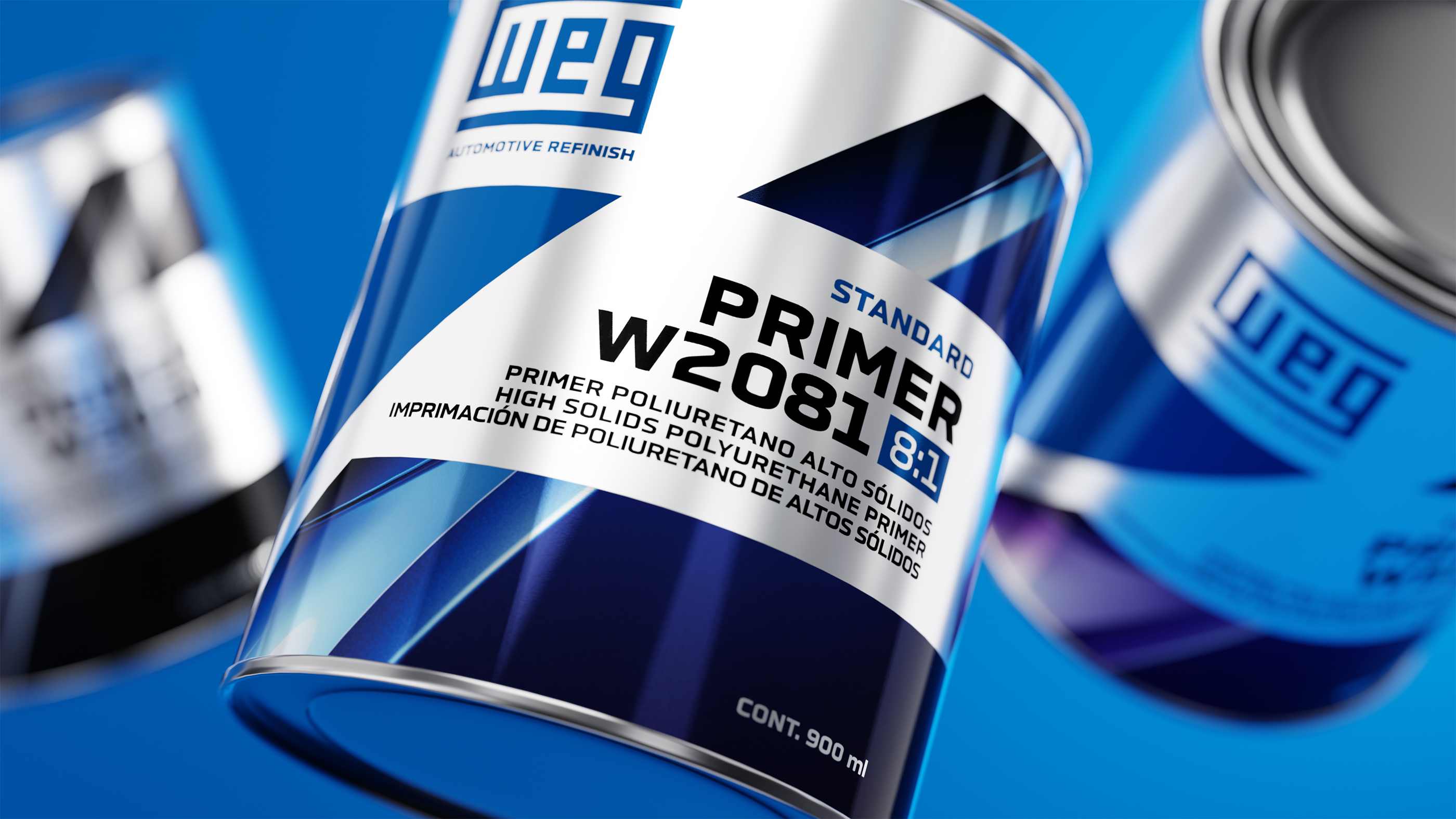 Ao reformular a identidade das embalagens, a SPR buscou tornar a distinção entre os tipos de produto mais intuitiva e eficiente. Os primers tiveram o fundo da arte associado à cor da lata, enquanto os vernizes receberam um fundo colorido. Essa escolha criativa foi inspirada no processo de repintura automotiva, em que o primer ‘prepara’ a superfície para, só então, receber cor, brilho e proteção por parte das tintas e vernizes. Além disso, a SPR decidiu desenvolver uma textura que remete à lataria de veículos, reforçando a associação com o segmento. Aplicada nas cores de cada linha e com traços sinuosos, a textura confere à embalagem um toque de performance e elegância, elevando a marca da WEG Tintas e seus produtos.